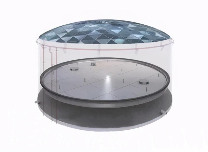 全接液內(nèi)浮盤指內(nèi)浮盤本體漂浮在液體中有一定的浸液高度,浮力單元之間及與各部件的連接部位有可靠的密封措施,形成底部全域浸入液體的內(nèi)浮盤。全浸液內(nèi)浮盤包括箱體式、浮艙式、玻璃鋼復(fù)合材料式、全焊接蜂巢芯式及其他形式的裝配式全浸液內(nèi)浮頂。全接液內(nèi)浮盤適用于儲罐內(nèi)直徑5m~48m。