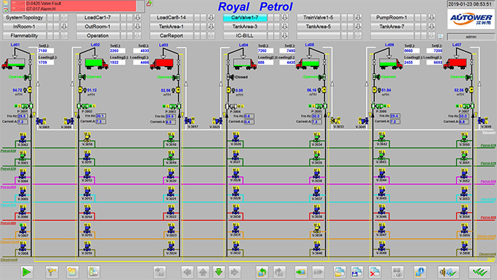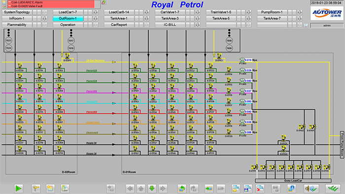 開、關閥等監(jiān)控操作:在操作站監(jiān)控畫面中,用鼠標點擊需要進行開、關操作的閥,對現(xiàn)場閥門開、關、故障、信號反饋等狀態(tài)進行監(jiān)視。
