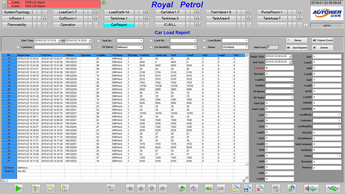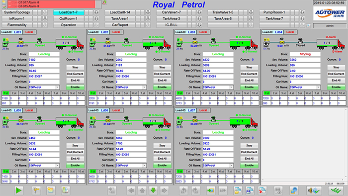 實時計算和顯示庫區(qū)油品存貨:用棒圖和數(shù)據(jù)表顯示所有有品的即時存量和空容量,體積、質量。物料存儲狀況的直觀圖形顯示,并通過不同的顏色反映現(xiàn)場生產動態(tài),設備工作狀態(tài)等。