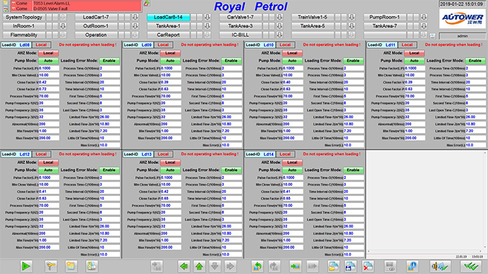 液位、溫度的監(jiān)測與報警:高低液位的預報警、報警、溫度報警狀態(tài);所監(jiān)控的油品物料罐的液位高度、罐容及液位是否處于各類報警區(qū)域等參數(shù)集中顯示。具有罐區(qū)各儲罐液位軟報警功能,操作人員可通過流程監(jiān)控畫面,對每個儲罐的液位進行上限和下限報警值設置罐液位顯示:在流程和液位畫面中,對于油品罐液位等進行顯示,利用亮度指示數(shù),動態(tài)棒圖及其顏色報警信息等反映現(xiàn)場狀況。